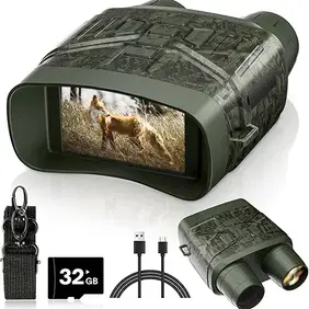 Night Vision Goggles - 4K Night Vision Binoculars with 5000mAh Rechargeable Battery, 32GB TF Card can Save Photo and Video, 3'' HD Screen for Camping & Security, Black